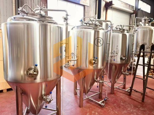 精釀啤酒設(shè)備發(fā)酵罐:啤酒發(fā)酵罐可配置200升或者400升啤酒發(fā)酵罐,整體設(shè)計(jì)采用頂部人孔設(shè)計(jì)思路,采用水封機(jī)械式排氣閥設(shè)計(jì),可自由設(shè)定壓力排出,自動(dòng)排壓;溫度采用夾套降溫的方式,單罐單控,發(fā)酵溫度可自由設(shè)定溫度,自動(dòng)控制;保溫采用80MM的保溫層;發(fā)酵罐配有液位裝置,可以觀察內(nèi)部液位;工作壓力2bar,成品產(chǎn)品保壓3bar72小時(shí)以上。